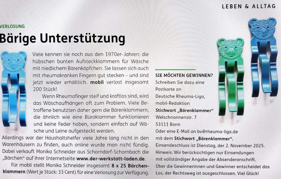 Dieser Artikel erschien in mobil, dem Mitgliedermagazin der Deutschen Rheuma-Liga