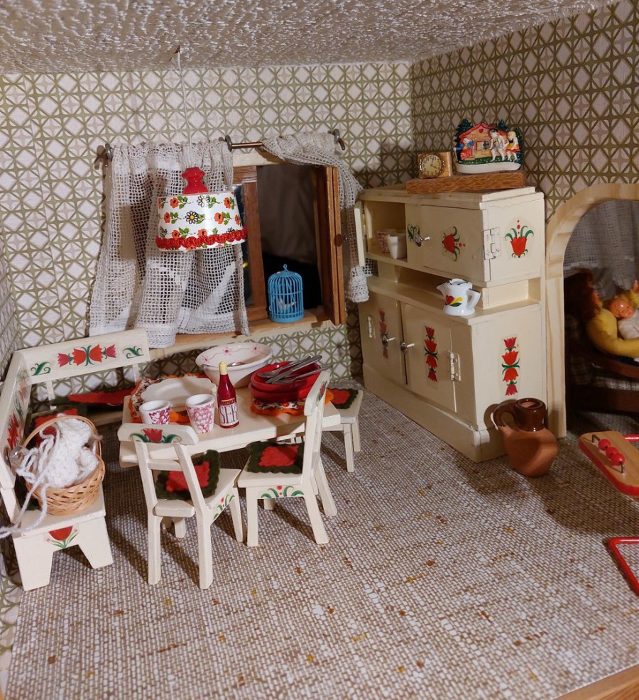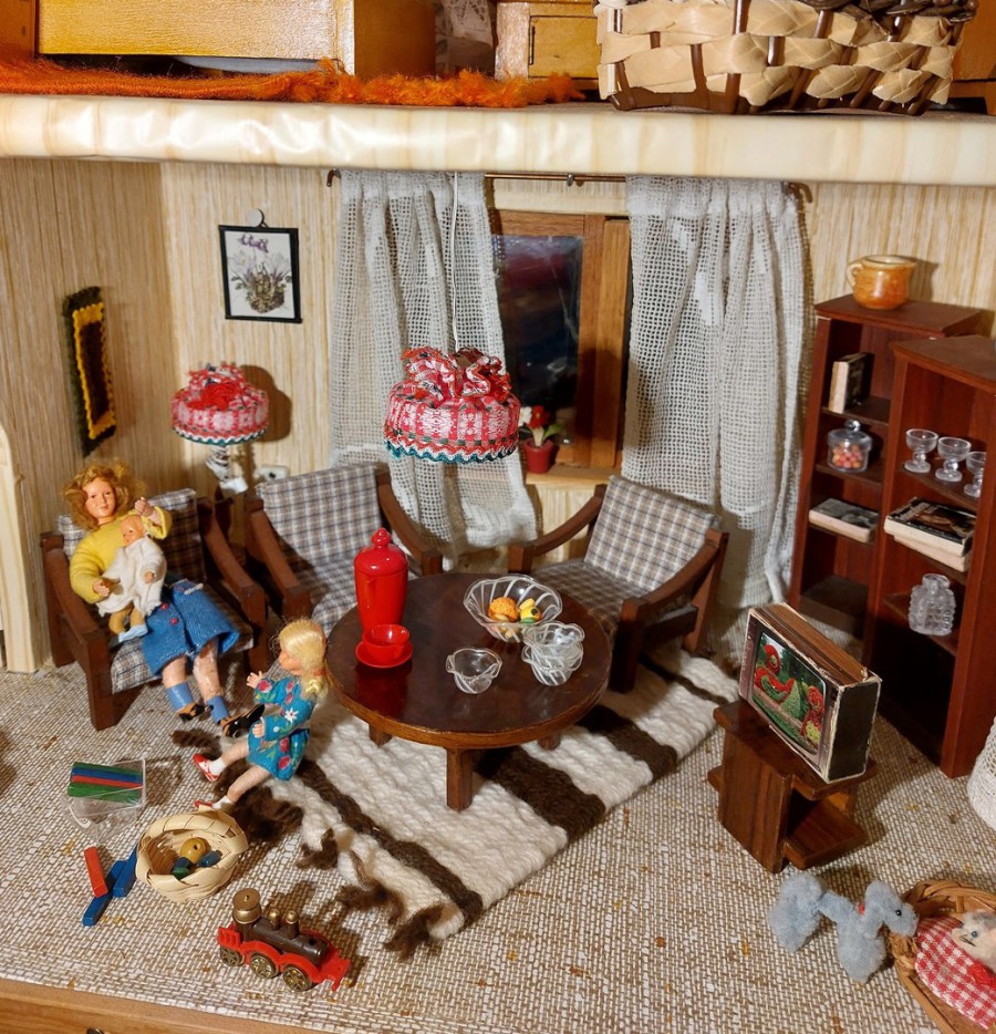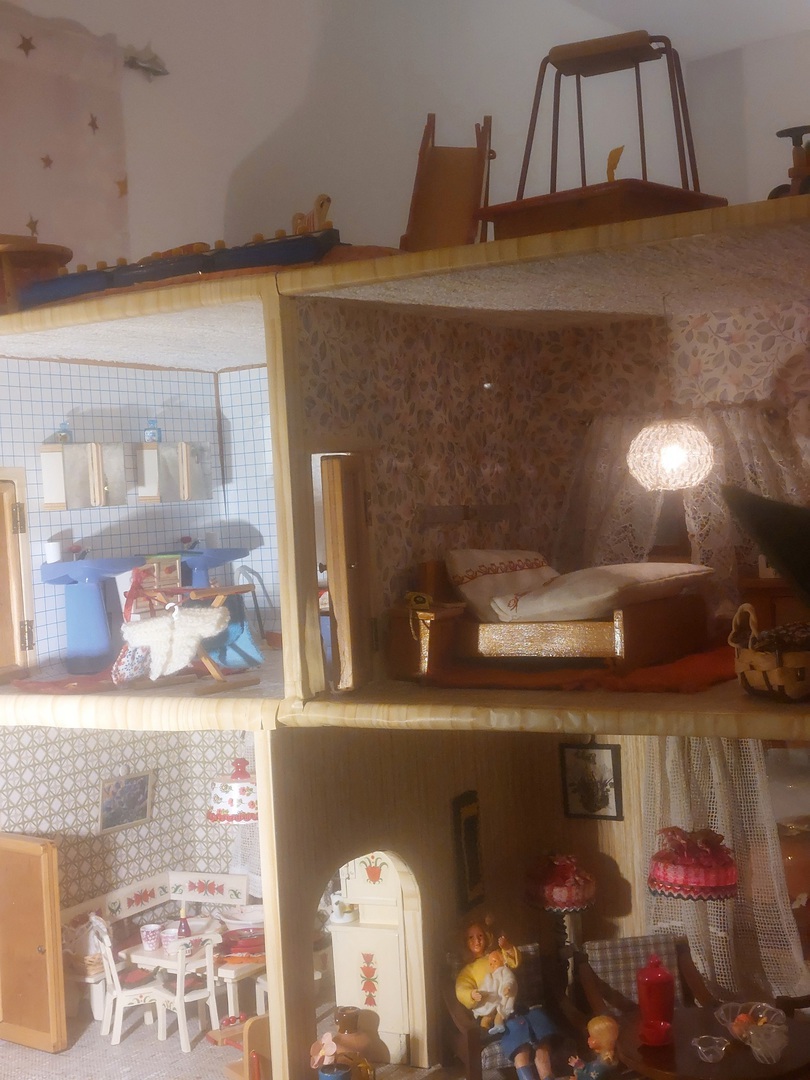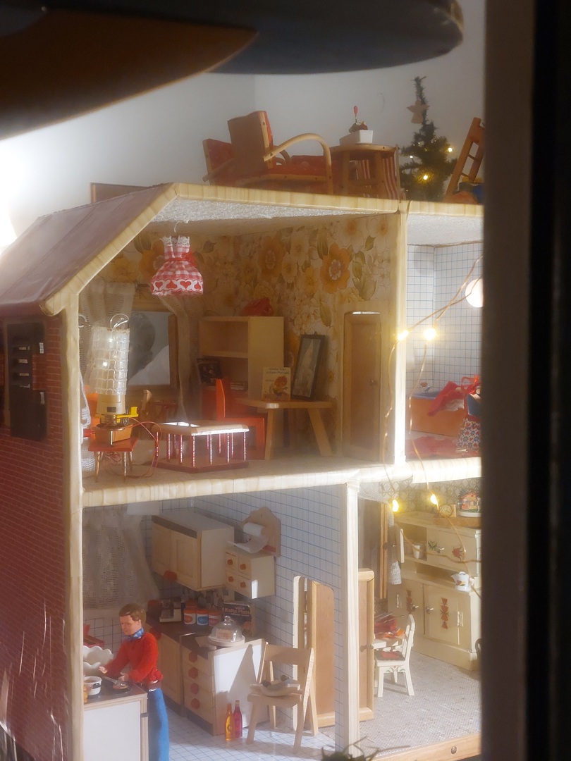 Puppenhaus Original aus den 1980er-Jahren im Familienbesitz. Selbst gebaut und ausgestattet von meinem Vater für seine Enkelinnen.